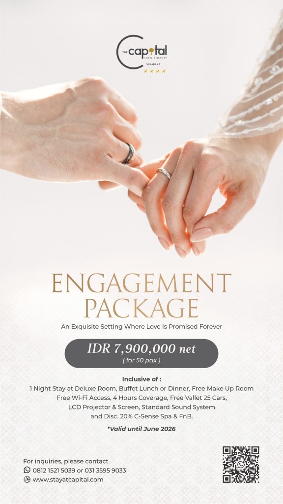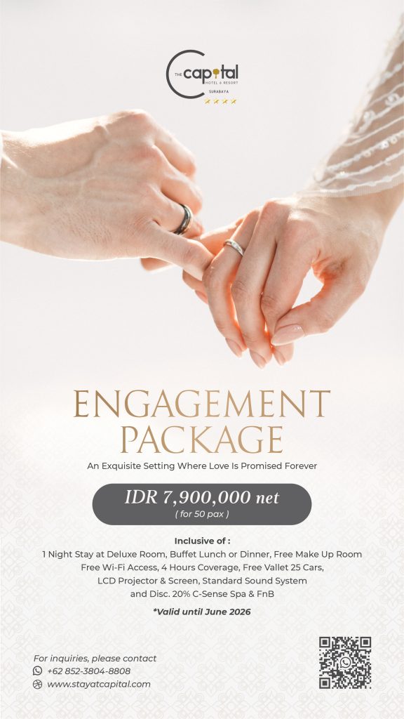 Make your engagement unforgettable at The Capital Hotel Surabaya. With elegant venues and personalized service, we’ll help create the perfect moment to start your journey together.